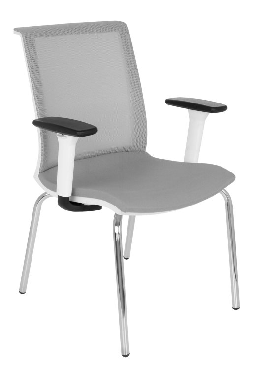 Tym razem wersja konferencyjna na 4 metalowych nóżkach (4L), stelaż oparcia i siedziska w kolorze białym white (W), oparcie tapicerowane przewiewną siatką (S).