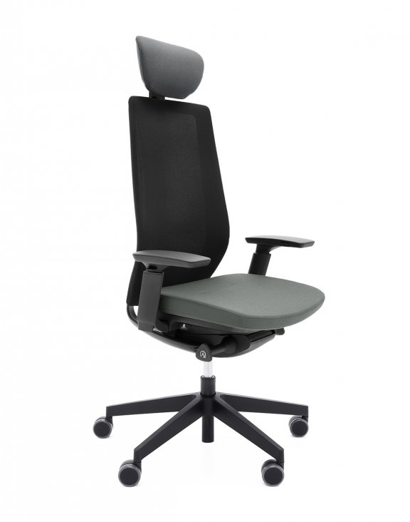 Zagłówek posiada możliwość regulacji wysokości oraz kąta nachylenia. Tapicerowany taką samą tkaniną jak siedzisko. Zapewnia dodatkowe podparcie dla kręgosłupa. Podparcie głowy na odcinku szyjnym plus wyprofilowane wysokie oparcie fotela dają kompleksowe oparcie dla kręgosłupa.