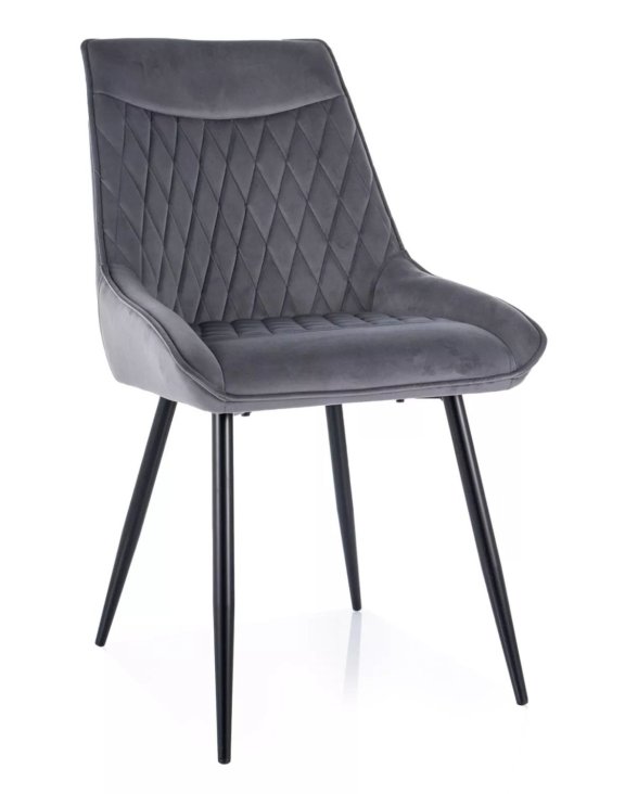 Siedzisko i oparcie wykończone miękkim welurem z eleganckim, pikowanym wzorem w kształcie rombów nadają krzesłu wyjątkowego charakteru, jednocześnie gwarantując wygodę nawet podczas długiego siedzenia.