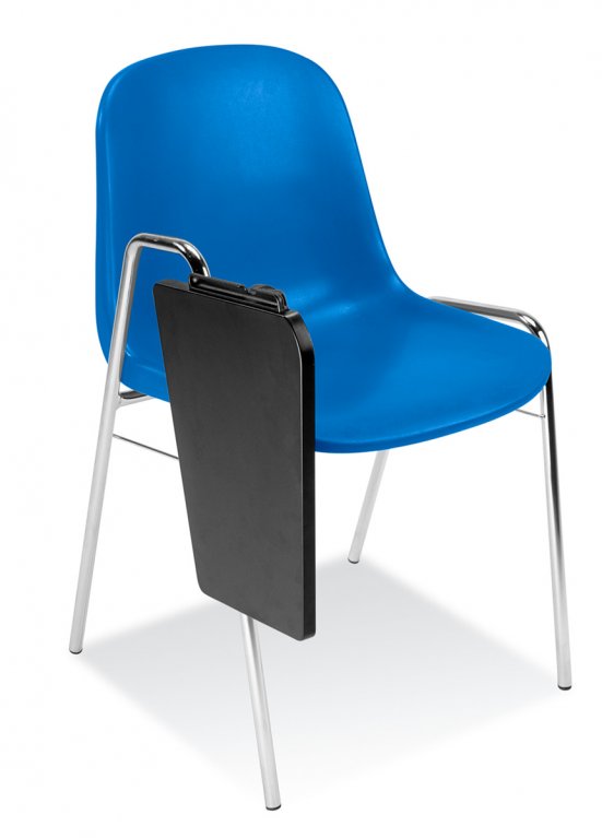 Krzesło z rodziny BETA na metalowym chromowanym stelażu, lekkim a zarazem bardzo stabilnym z pulpitem do pisania.