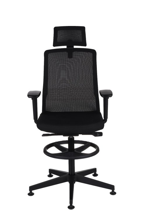Ergonomiczne krzesło biurowe Coco BS HD RB marki Grospol o podwyższonym siedzisku z podnóżkiem o regulowanej wysokości i regulowanym zagłówkiem.
