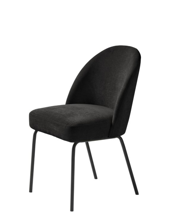 Czarny kolor tkaniny wprowadza do wnętrza głębię, a czarne, malowane proszkowo stalowe nogi dodają mu nowoczesnego charakteru.