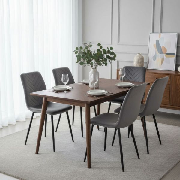 - Komfort na najwyższym poziomie - miękka tapicerka z tkaniny Bluvel o aksamitnej strukturze gwarantuje przyjemne doznania w dotyku i wygodę siedzenia nawet podczas długich spotkań przy stole.