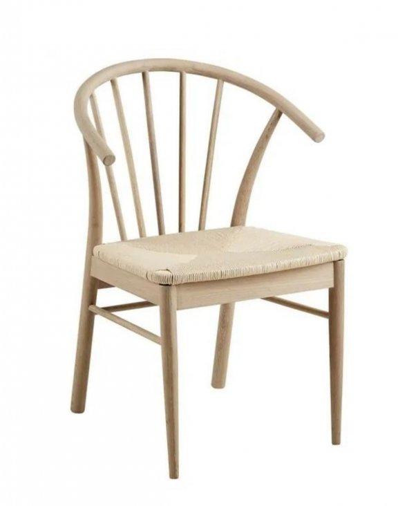 Oparcie jest lekko zakrzywione dzięki czemu krzesło jest wygodne, a pionowe listwy nadają meblowi ciekawego wyglądu.