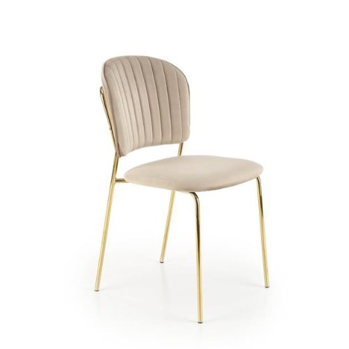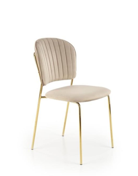 Złoty stelaż stanowi nie tylko solidną podstawę tego krzesła, ale także dodaje mu subtelnego blasku i luksusowego wyglądu. Doskonale komponuje się z różnorodnymi wystrojami wnętrz, dodając odrobinę wyjątkowości do każdej aranżacji.