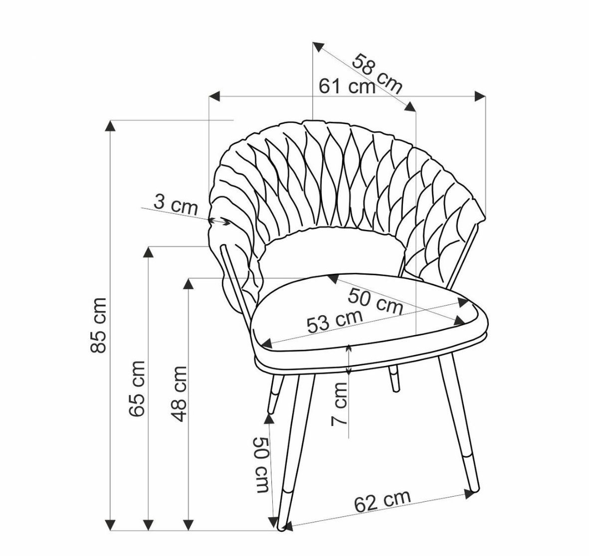 Wymiary: szerokość 62 cm, wysokość 85 cm, głębokość 58 cm.
