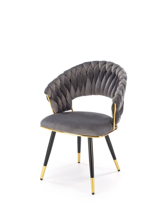 Krzesło K551 marki Halmar to tapicerowany mebel w eleganckim popielatym welurze, które łączy komfort użytkowania z modnym designem w stylu glamour i nowoczesnym.