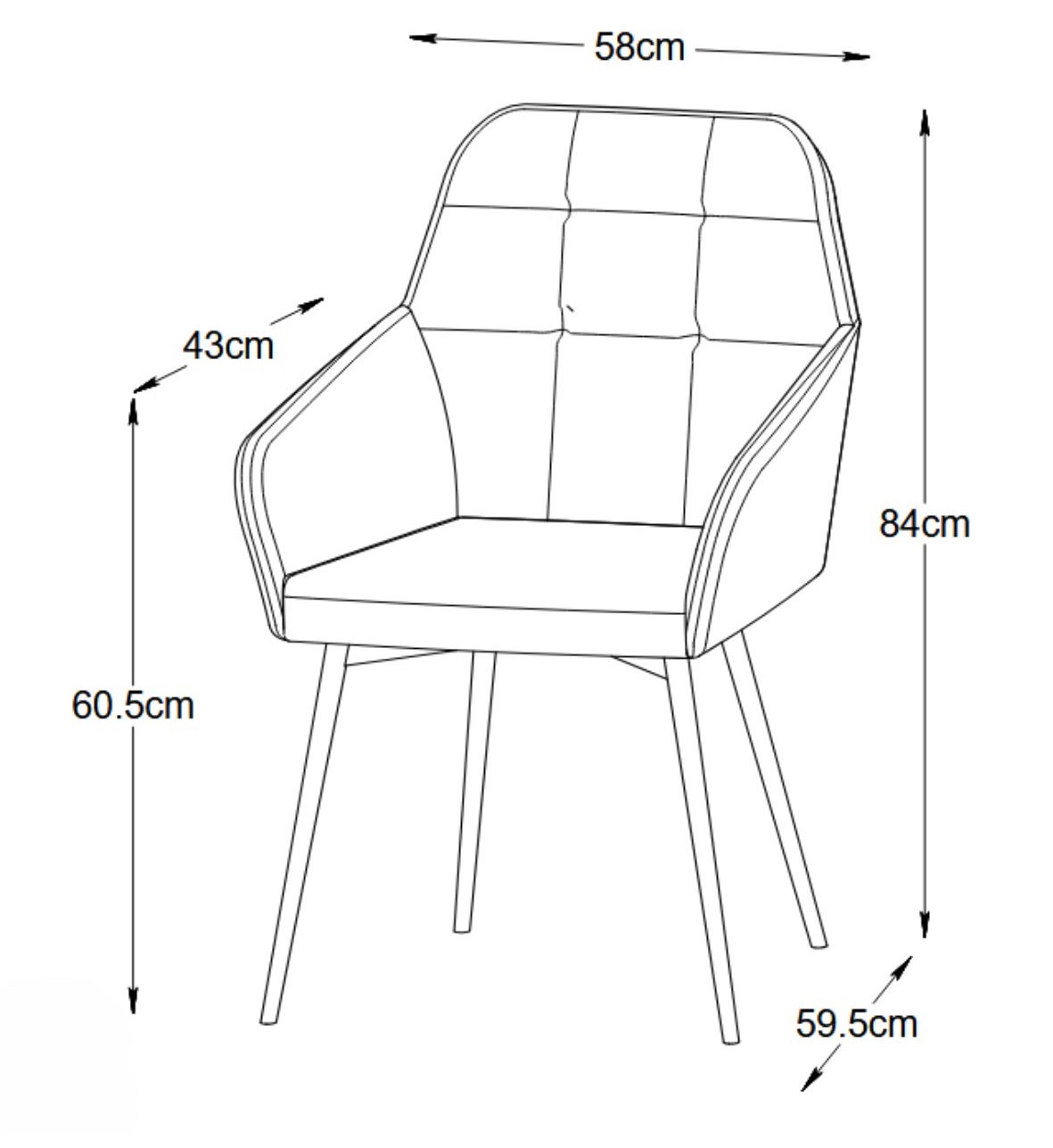Wymiary: szerokość siedziska 43 cm, głębokość siedziska 43 cm.