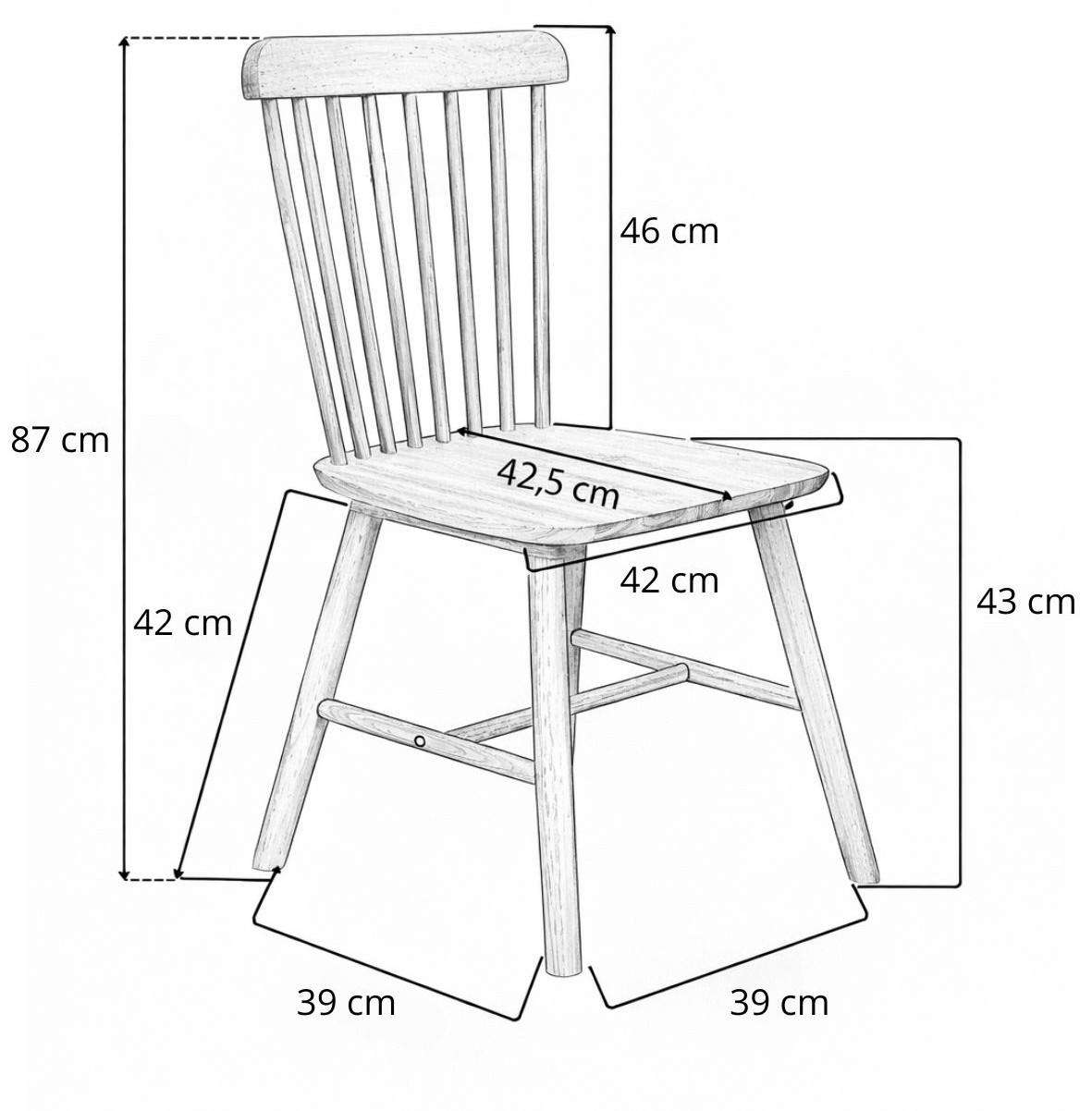 Wysokość całkowita 87 cm oraz szerokość 42 cm zapewniają wygodne użytkowanie przy standardowych stołach, a wyprofilowane oparcie ze szczebelkami gwarantuje komfort siedzenia na co dzień.