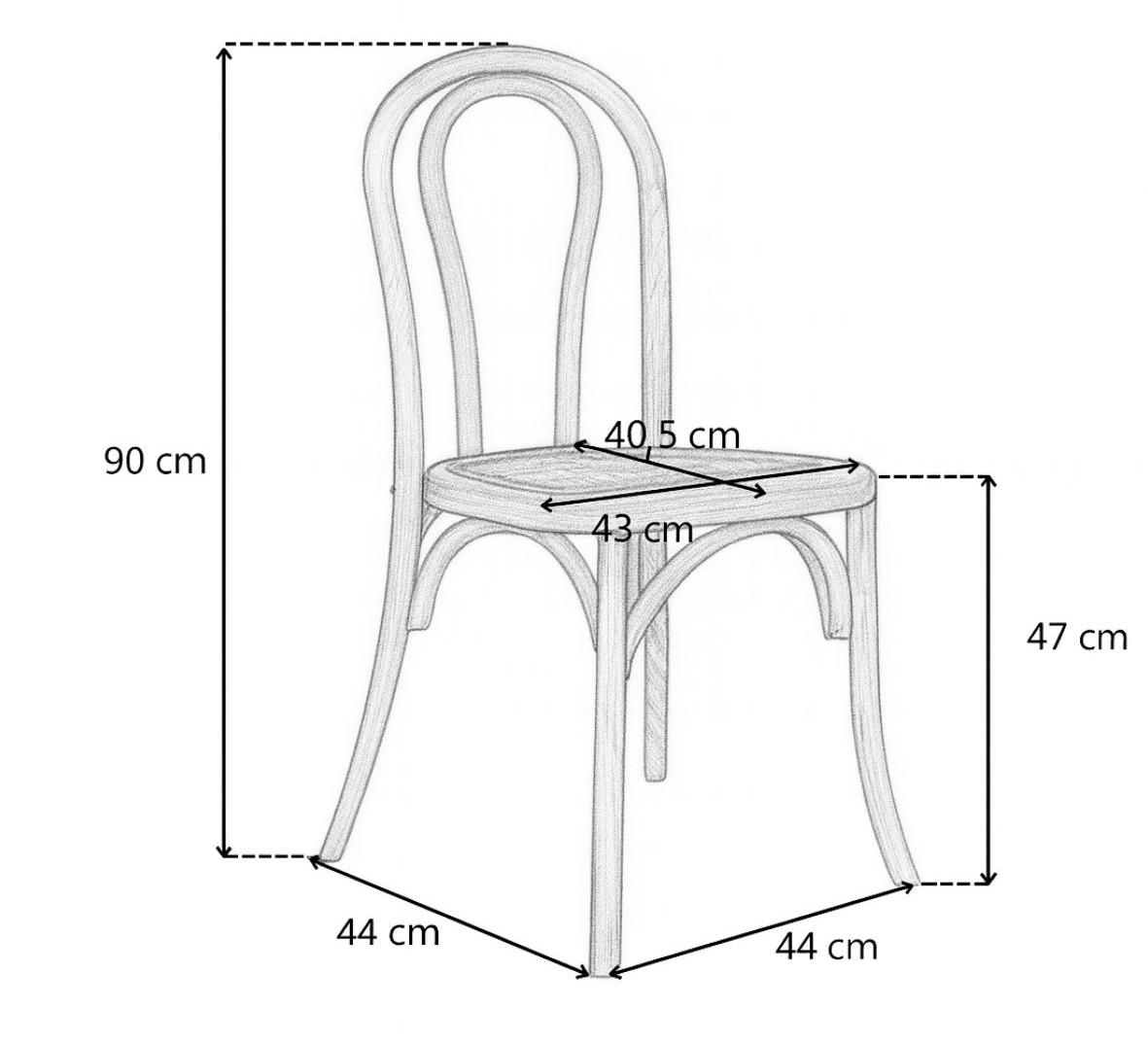 Solidna konstrukcja z drewna bukowego zapewnia trwałość na długie lata użytkowania, a charakterystyczne oparcie w kształcie ręcznie wyginanego łuku dodaje krzesłu niepowtarzalnego charakteru.