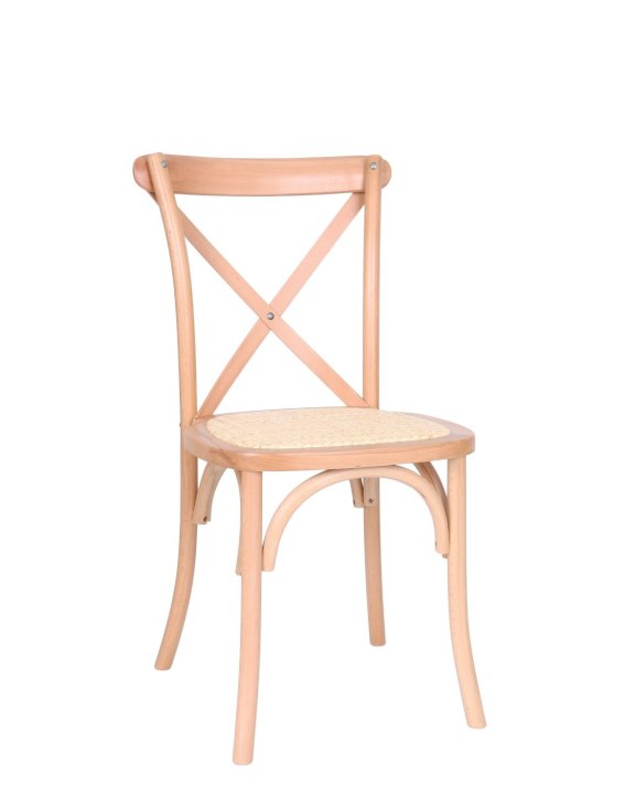 Solidna konstrukcja zapewnia trwałość na długie lata użytkowania, a charakterystyczne oparcie z drewnianych listewek ułożonych w kształt litery "X" nadaje krzesłu wyjątkowego charakteru i subtelnej elegancji.