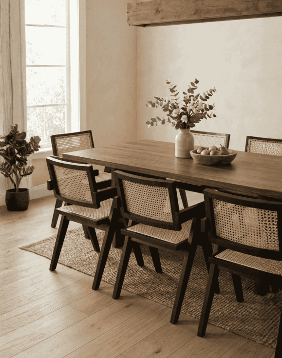 Oparcie i siedzisko wykonane metodą plecionki wiedeńskiej dodają mu subtelności i wyjątkowej faktury, zapewniając komfort użytkowania oraz naturalny przepływ powietrza.