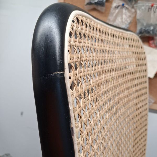 Oparcie i siedzisko krzesła zostały wykonane z naturalnego rattanu, co nadaje mu charakteru i oryginalności.