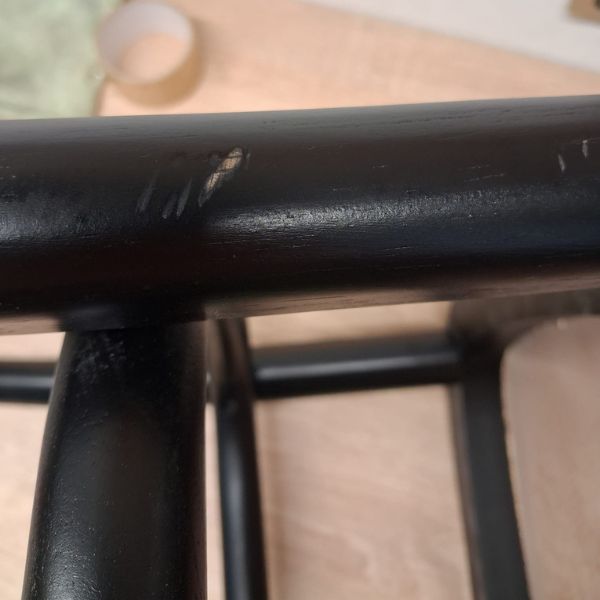 Krzesła posiadają rysy na oparciu, plamy na siedzisku i rysy na nogach. Zdjęcia poniżej: