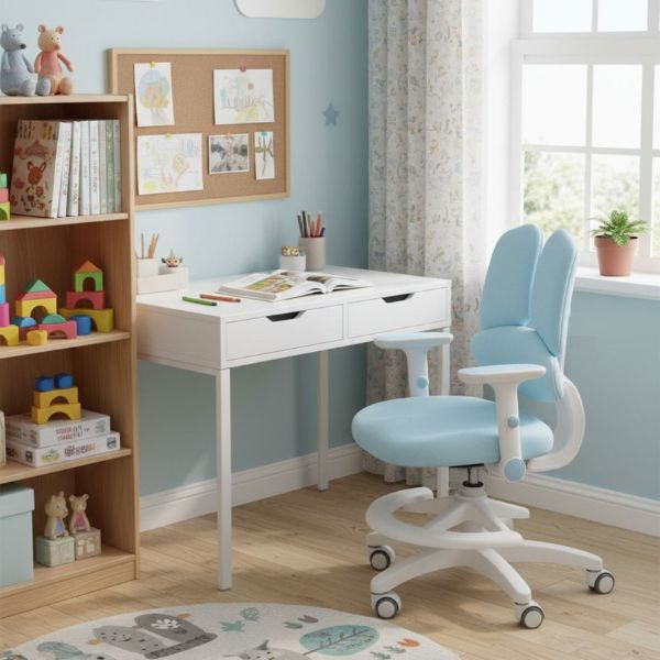 Krzesło dziecięce BunnyFit Blue to nowoczesne, ergonomiczne rozwiązanie zaprojektowane z myślą o zdrowej postawie dziecka, komforcie nauki i atrakcyjnym designie pasującym do każdego pokoju dziecięcego lub młodzieżowego.