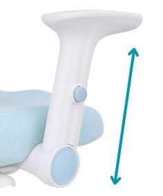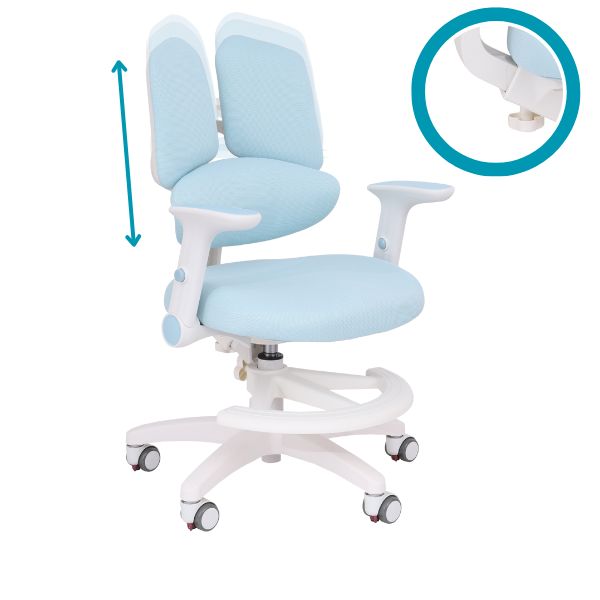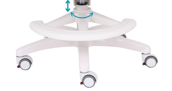 Regulacja wysokości siedziska (góra–dół) za pomocą podnośnika pneumatycznego i wygodnej dźwigni pod siedziskiem umożliwia szybkie dopasowanie krzesła do wzrostu dziecka i wysokości biurka.