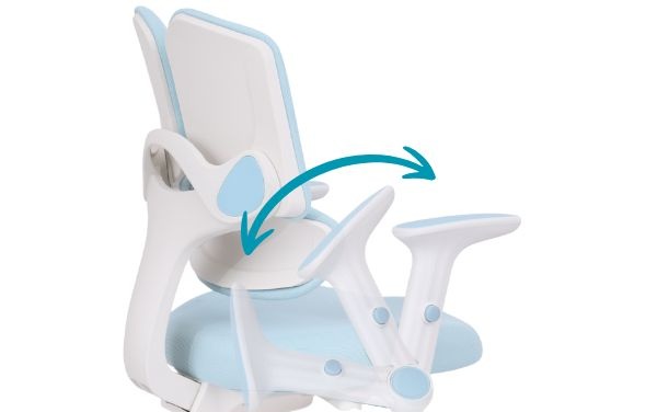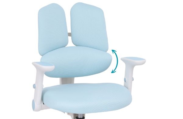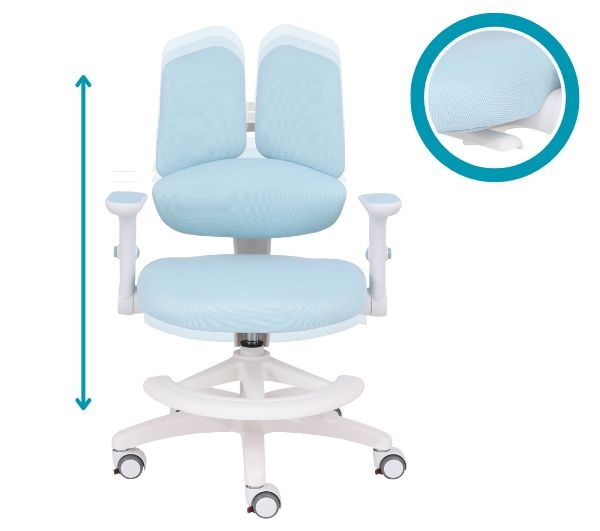Zastosowane dynamiczne podparcie lędźwiowe z wyraźnie wyprofilowanym odcinkiem lędźwiowym aktywnie podąża za ruchami dziecka, zapewniając stałe wsparcie kręgosłupa podczas nauki, rysowania czy pracy przy biurku.