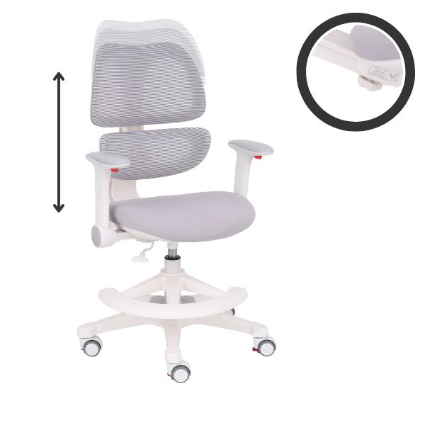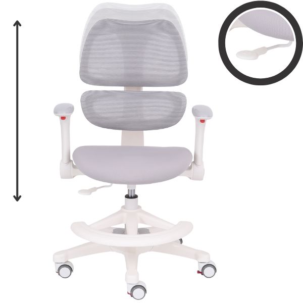 Jasna, przyjazna kolorystyka oraz lekka forma doskonale pasują do pokoju dziecięcego, a zaawansowane możliwości regulacji sprawiają, że krzesło idealnie dopasowuje się do zmieniających się potrzeb rosnącego dziecka.