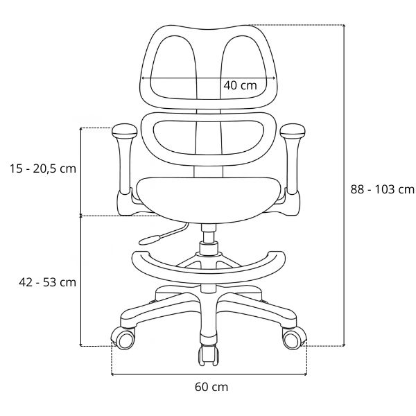 - Dzięki szerokiemu zakresowi regulacji krzesło dopasowuje się do indywidualnych potrzeb użytkownika, wspiera prawidłową postawę i zapewnia komfort na wiele lat.