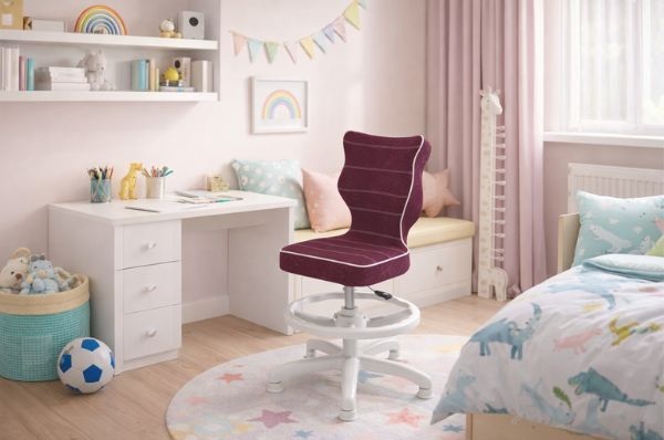 Krzesło Petit z podnóżkiem to ergonomiczne krzesło obrotowe zaprojektowane specjalnie z myślą o dzieciach w wieku szkolnym.