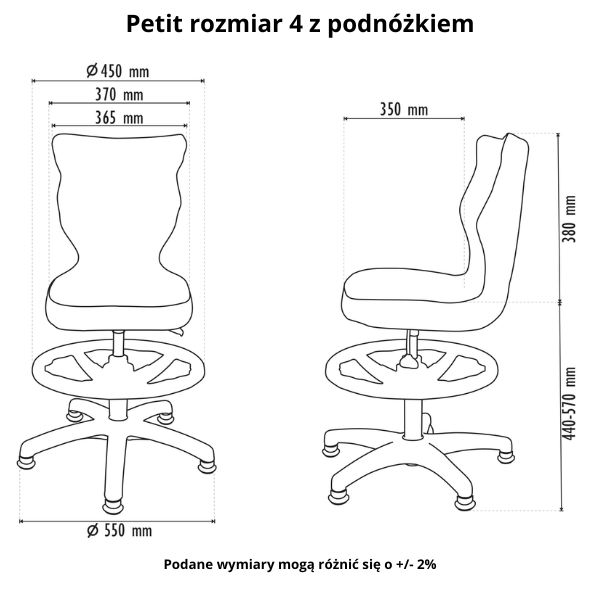 | Krzesło dziecięce Entelo Petit z podnóżkiem 133-159 cm, Szara Podstawa | ||||