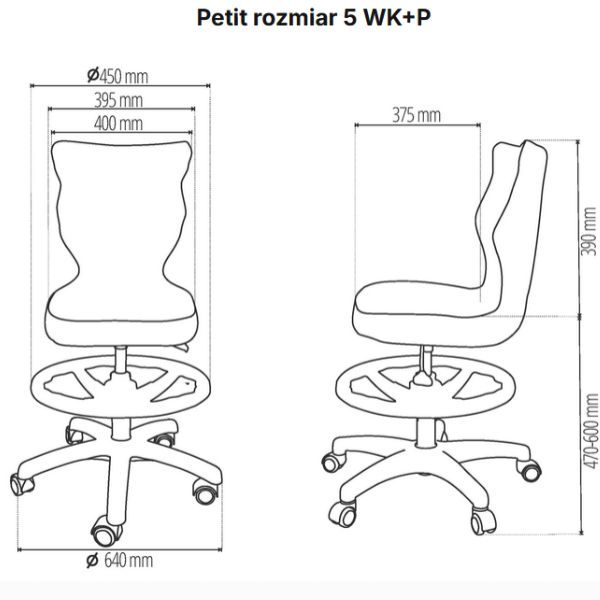 Krzesło Petit z podnóżkiem to ergonomiczne krzesło obrotowe zaprojektowane specjalnie z myślą o dzieciach w wieku szkolnym.