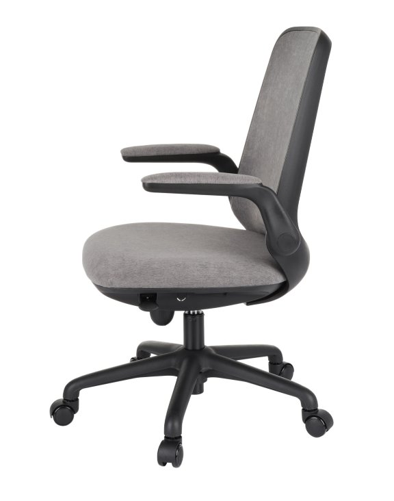 Dla zapewnienia większego komfortu fotel został wyposażony w tapicerowane podłokietniki. Podłokietniki można swobodnie podnosić i opuszczać, a to pomaga w przyjęciu prawidłowej postawy siedzenia. Zastosowanie podłokietników odciąża łokcie i ramiona co sprawia, że Użytkownik nie męczy się.
