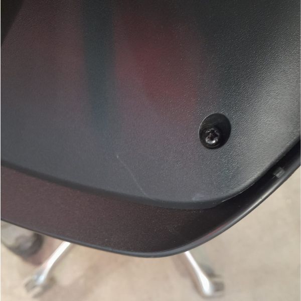 Krzesło w kolorze czarnym, posiada lekkie ślady montażu widoczne na poniższych zdjęciach: