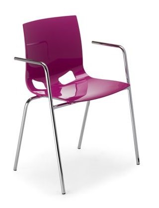 Krzesło Fondo PP Arm marki Nowy Styl na metalowych nóżkach z wyraźnie profilowanym siedziskiem i oparciem wykonanym z polipropylenu (plastik) o błyszczącej strukturze.