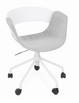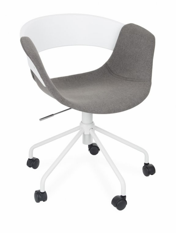 Obrotowe krzesło Forma Move marki Avida Design cechuje wyraźnie profilowane oparcie, które zostało wykonane z trwałego, estetycznego białego plastiku (polipropylen).