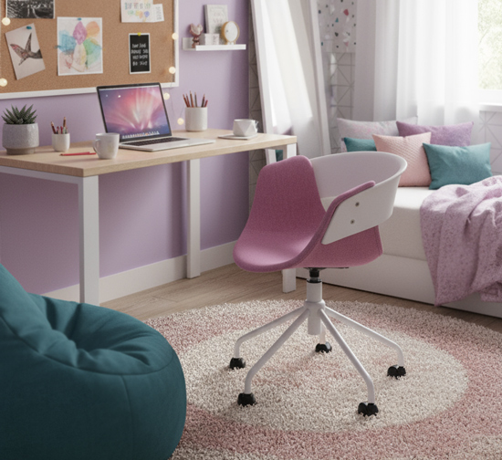 Lekka nowoczesna stylistyka sprawia, że mebel idealnie wkomponuje się w przestrzeń biurową, jak i strefę wypoczynkową w domu (np. pokój dziecka).