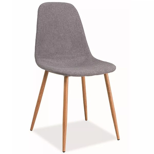 Nowoczesne Krzesło Fox to elegancki mebel w stylu skandynawskim — tapicerowane przyjemną w dotyku tkaniną, opierające się na smukłym, dębowym metalowym stelażu.