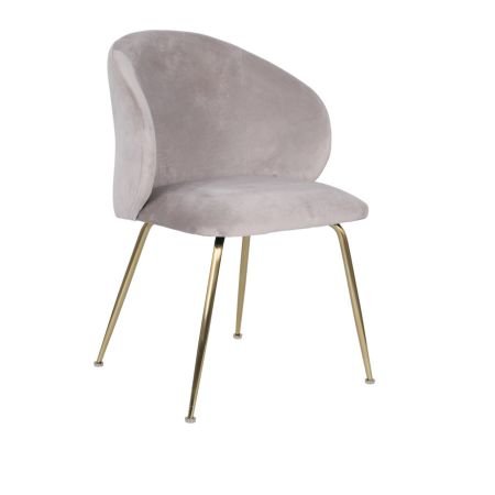Krzesło tapicerowane jest tkaniną velvet w kolorze beżowym.