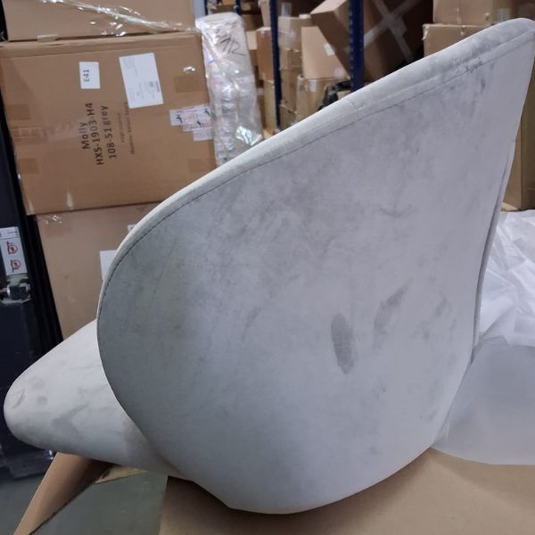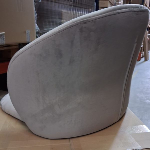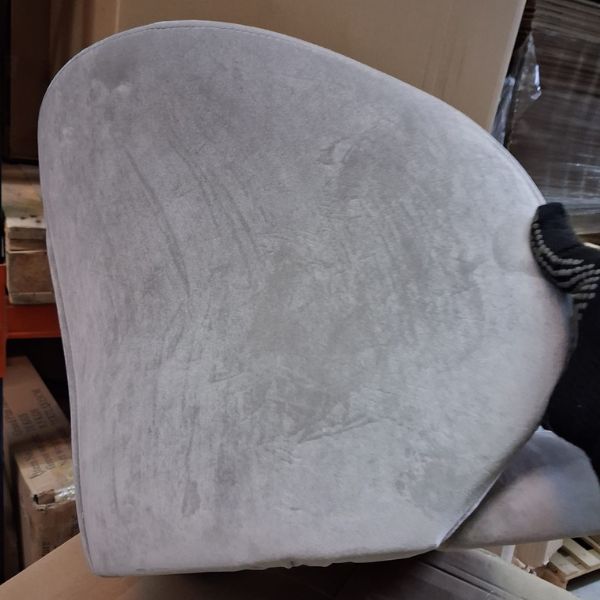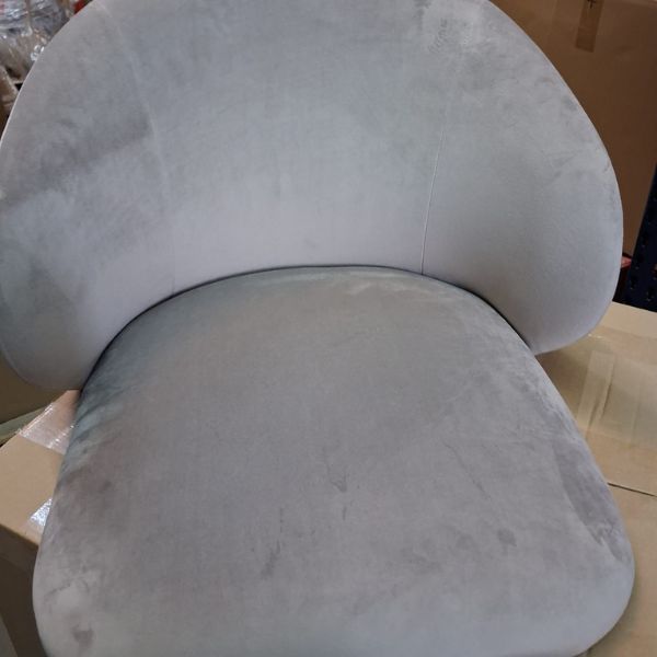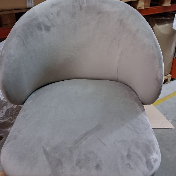 Krzesło tapicerowane jest tkaniną velvet w kolorze beżowym.