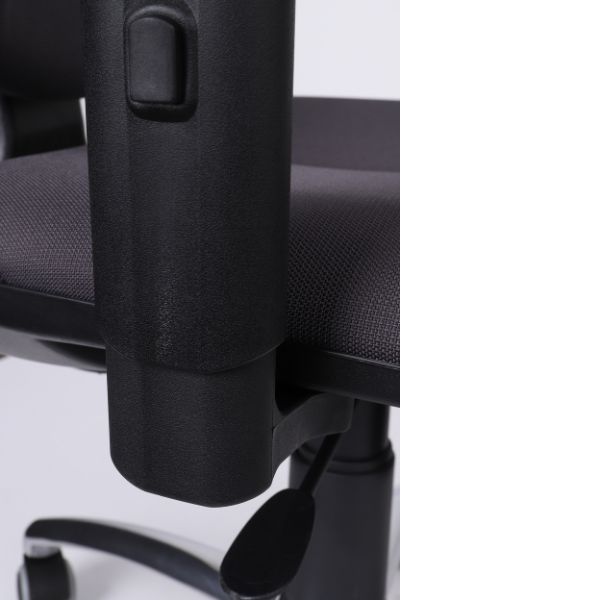 Podłokietniki o regulowanej wysokości"R" (R26S) umożliwiają ergonomiczne (90 stopni względem tułowia) ułożenie przedramienia, co znacząco odciąża mięśnie pleców podczas długiej pracy w pozycji siedzącej,