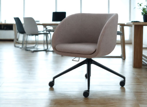Nowoczesne krzesło obrotowe Jula Roll up&down to udoskonalony wariant znanego krzesła Jula, wyposażony w stabilną, metalową podstawę na kółkach z funkcją regulacji wysokości.