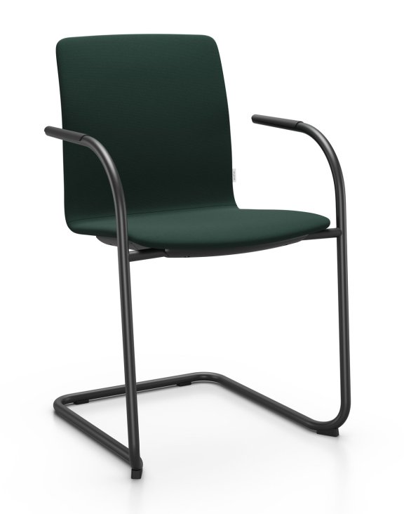 Wersja 2P to metalowe podłokietniki zintegrowane ze stelażem, z nakładką polipropylenową w kolorze czarnym.