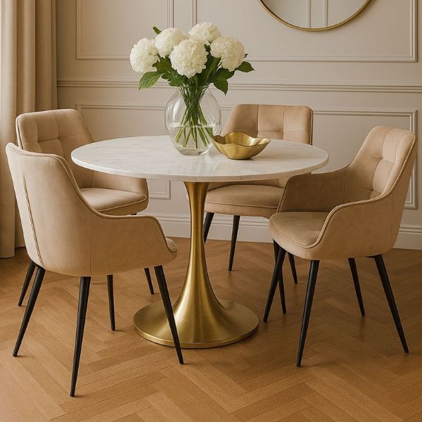 Pikowania na oparciu dodają elegancji i głębi, a smukłe kształty sprawiają, że krzesło będzie dekoracyjnym akcentem w salonie, jadalni lub eleganckim biurze.