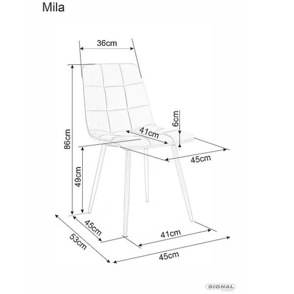 Krzesło Mila Velvet to połączenie miękkiej aksamitnej tkaniny Bluvel z solidnym metalowym stelażem w czarnym macie.