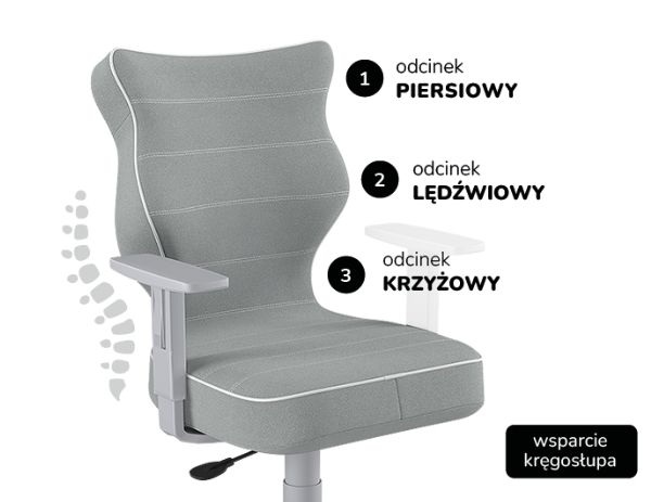 Krzesło młodzieżowe Duo zostało zaprojektowane tak, aby realnie odciążać kręgosłup i wspierać prawidłową postawę podczas siedzenia.