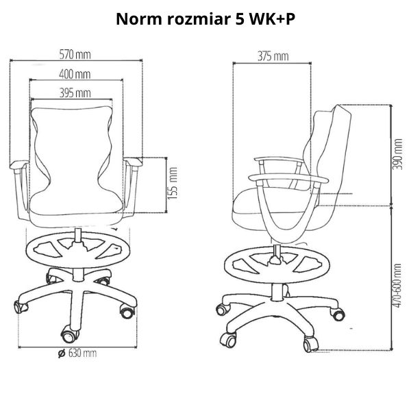 | Krzesło młodzieżowe Norm z podnóżkiem, czarna podstawa, rozmiar 5 (wzrost 146 - 176,5 cm) | |||||