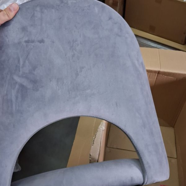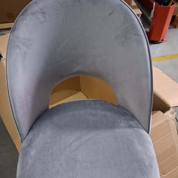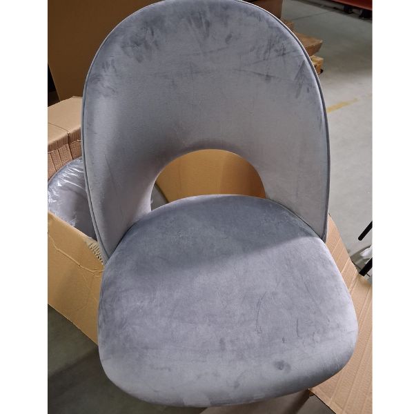 Krzesło jest tapicerowane miłą w dotyku tkaniną welwet w szarym kolorze. Mogą Państwo kupić, też Molly w kolorze beżowym z czarnymi nóżkami oraz w kolorze szarymi i beżowym ze złotymi nogami.