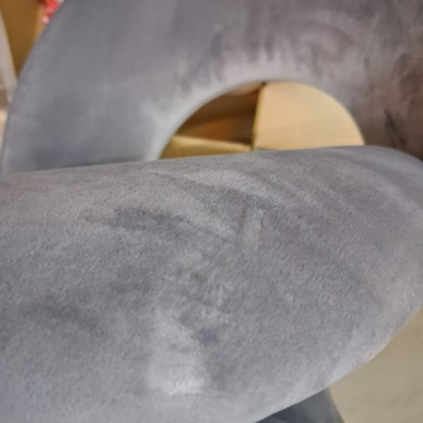Krzesło jest tapicerowane miłą w dotyku tkaniną welwet w szarym kolorze. Mogą Państwo kupić, też Molly w kolorze beżowym z czarnymi nóżkami oraz w kolorze szarymi i beżowym ze złotymi nogami.