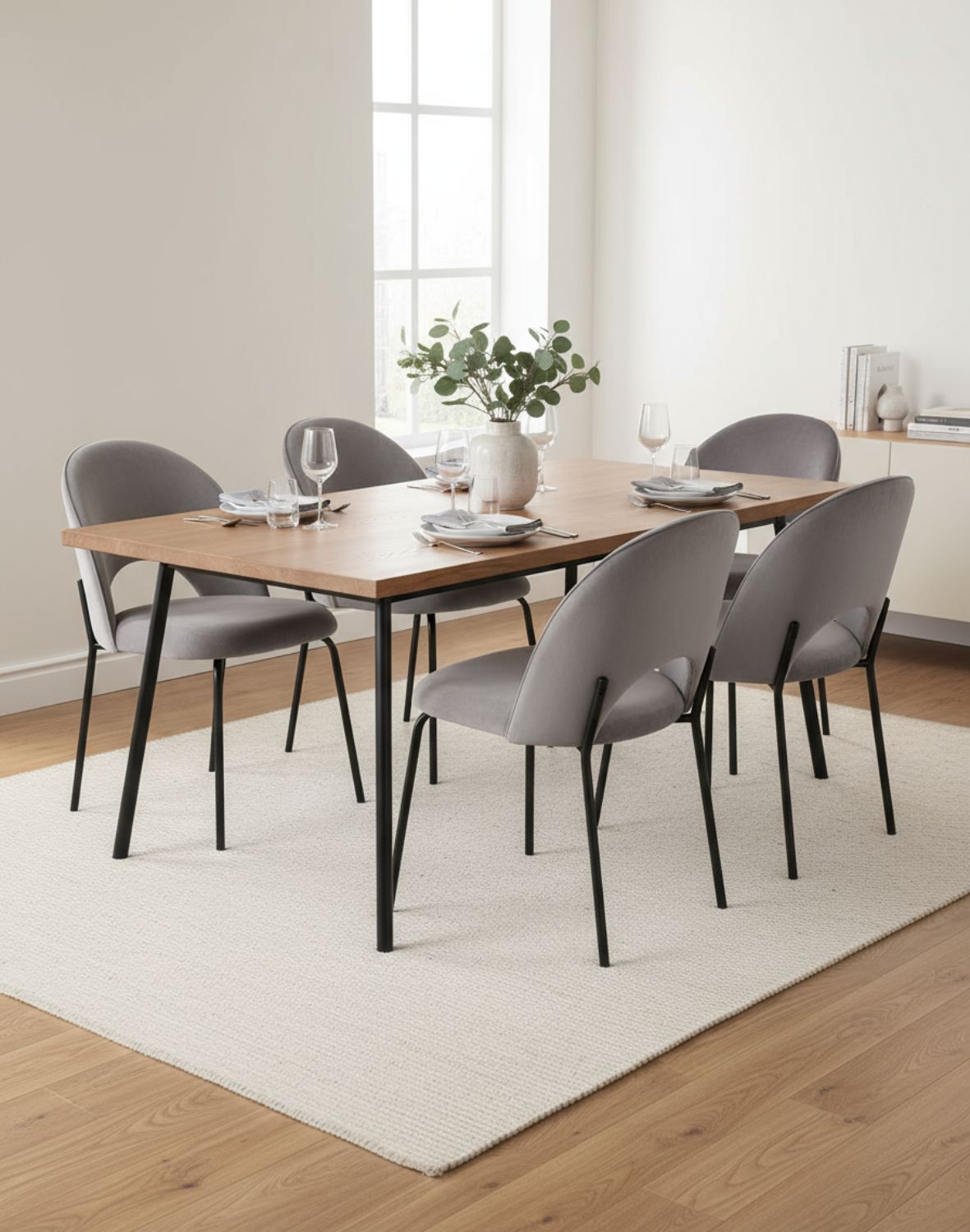 Krzesło do jadalni Molly Black w kolorze szarym marki Avida Design z czarnymi nóżkami i miękką w dotyku tapicerką i designerska forma oparcia wpisuje się swą estetyką w najnowsze trendy wnętrzarskie.