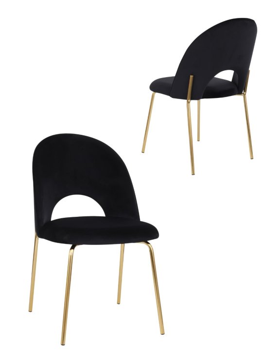 Krzesło do jadalni Molly Black w kolorze czarnym marki Avida Design ze złotymi nóżkami, miękką w dotyku tapicerką i designerską formą oparcia wpisuje się swą estetyką w najnowsze trendy wnętrzarskie.
