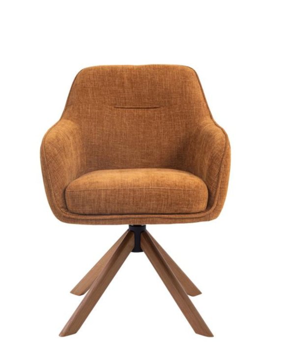 Tapicerka fotela wykonana jest z materiału Top 273 w kolorze rudym, która jest w 100% poliestrem. Tkanina ma subtelny "antyczny" efekt wizualny i jest miękka w dotyku, przypominającą lekkie chenille.