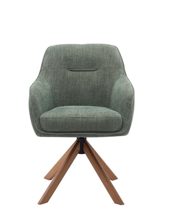 Tapicerka fotela wykonana jest z materiału Top 352 w kolorze zielonym, która jest w 100% poliestrem. Tkanina ma subtelny "antyczny" efekt wizualny i jest miękka w dotyku, przypominającą lekkie chenille.