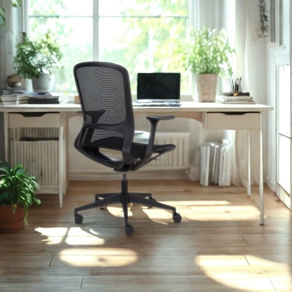 To ekonomiczne krzesło obrotowe zostało zaprojektowane z myślą o komforcie podczas pracy lub nauki przy biurku.
