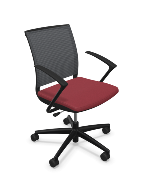 Podłokietniki stałe zintegrowane z ramą, malowane proszkowo w kolorze czarnym. Nakładki z poliamidu wzmocnionego włóknem szklanym (PA + GF) w kolorze czarnym.