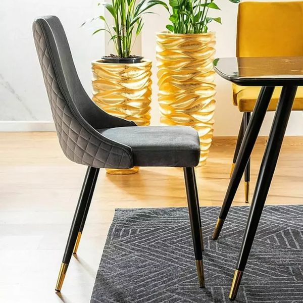 Tapicerowane miękkim aksamitem Bluvel, ozdobione pikowaniem w romby na oparciu, doskonale wpasuje się w modne aranżacje jadalni i salonu.
